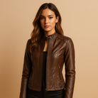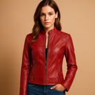 Give your wardrobe a bold upgrade with this, a women’s biker jacket that combines timeless elegance with a modern look. The structured silhouette, stand-up collar, and metal accents create a stylish appearance that can be worn both casually and chic. Perfect to combine with jeans, skirts, or dresses, allowing you to effortlessly create a versatile outfit for everyday wear or a night out.