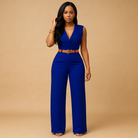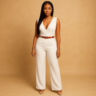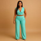 this is an elegant jumpsuit for women featuring a deep V-neckline and a high waist that beautifully accentuates your silhouette. The smooth, flowing fabric feels luxurious and moves gracefully with you. Perfect for a night out, a party, or any special occasion where you want to shine with confidence and class. Available in various colors to suit every mood or setting.