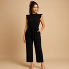 Elegant Jumpsuit With Belt And Cap Sleeves For Women