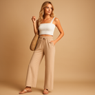 Relax in style with this, a comfortable women’s lounge pants featuring a high waist and straight legs for an effortlessly elegant look. The lightweight, fluid fabric offers ultimate wearing comfort, while the practical pockets provide convenience whether you’re lounging or on the go. Perfect for a casual day at home, relaxed outings, or stylish loungewear.