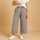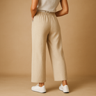 Feel fresh and stylish with this, an airy summer trouser for women that effortlessly combines comfort and elegance. Thanks to the regular fit and breathable design, these trousers are ideal for warm spring days or summer outings. this exudes both casual tranquility and chic sophistication, making it a versatile choice for any modern wardrobe.