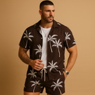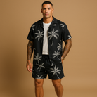 this is a lightweight and stylish summer set for men, perfect for warm days by the sea or in the city. The cheerful palm tree and feather print gives it a summery look and instantly puts you in a holiday mood. Thanks to the relaxed fit and breathable material, you’ll stay cool and fashionable – ideal for a laid-back stroll or a tropical outing. Pair with slippers or sneakers for a complete summer look.