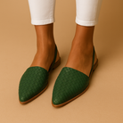 this combines style and wearing comfort in one pair of elegant flats with a woven closed toe for women. The fine weaving detail gives a refined look, while the closed fit offers extra stability and comfort. These shoes are perfect for work, casual meetings, or everyday use. Breathable and lightweight, ideal for long days when you want to keep looking polished.