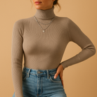 Discover this, a stylish knitted turtleneck sweater for women that combines timeless design with modern versatility. Made from soft quality yarns, this sweater offers comfortable warmth and a perfect fit for cold days. The fold-over collar provides extra protection against the wind and gives an elegant look. Whether you wear it with jeans for a casual look or with a skirt for a more formal outfit, this adapts effortlessly to your style.