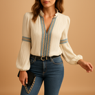 Elegant Blouse With Lace And Lantern Sleeves For Women