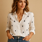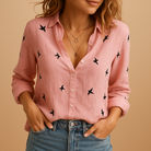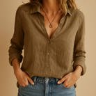 this is a lightweight casual blouse for women with a relaxed fit and a soft, breathable fabric – ideal for transitioning from summer to autumn. The flowing design offers a comfortable and stylish look that can be effortlessly paired with jeans, a skirt, or trousers. Whether you go for a casual daytime look or a more polished outfit, this blouse easily adapts to any style.