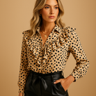 this is a feminine blouse with a V-neck and subtle ruffles that add an elegant touch to any outfit. The stretchy and soft fabric offers ultimate wearing comfort and freedom of movement. Perfect for both casual days and formal occasions, and easy to pair with skirts or pants. Effortlessly add class to your wardrobe.