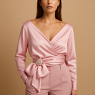 Meet this, an elegant wrap blouse for women that seamlessly combines style and comfort. The adjustable waist tie flatters the silhouette, while the airy fit offers ultimate wearing comfort. This blouse is perfect for both chic everyday outfits and formal occasions. Effortlessly pair this with a skirt or trousers for a feminine, refined look.