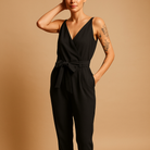 - Design: Jumpsuit with V-neck, long pant legs, and waistband