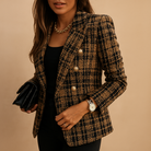 Discover this, a stylish checked blazer for women that effortlessly combines classic charm with a modern cut. The double-breasted design and striking check pattern provide a refined appearance—perfect for formal occasions or as an eye-catching detail for a casual look. Thanks to the long sleeves and comfortable fit, this is the ideal blazer for any season.