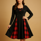 Combine elegance and class with this, a checked A-line dress for women that flatters the figure and seamlessly fits into any wardrobe. The flared skirt gives you a graceful appearance and ultimate comfort, while the double-button closure and long sleeves provide a refined and timeless look. Ideal for work, a dinner, or a day out – this can be stylishly paired with both heels and boots.