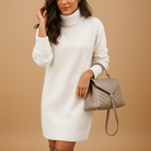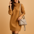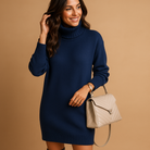 Embrace autumn in style with this, a knitted midi dress for women that combines warmth and sophistication. Thanks to the soft fabric and feminine fit, this dress is perfect for a day at the office, a dinner out, or a fall walk. The stylish length and elegant details create a look that is both comfortable and chic. Perfect to pair with boots or a coat for the ultimate autumn outfit.