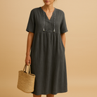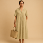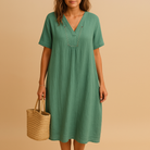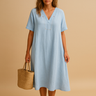 Say hello to this, a lightweight summer dress for women that seamlessly combines elegance and comfort. The loose fit creates a flattering silhouette, while the light, breathable fabric keeps you cool on warm days. Whether you’re heading to a casual brunch, a city stroll, or a summer party, this dress is always the right choice. Easy to style with sneakers or sandals for the perfect summer look.