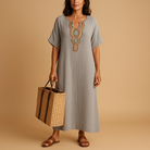 Step into summer in style with this, an airy kaftan dress for women that perfectly combines elegance and comfort. The flowing fit and lightweight fabric create an effortless look on warm days. Ideal for both summer beach days and formal occasions, this dress is designed for ultimate freedom of movement and versatile styling. Wear it with sandals or heels and shine with every step.