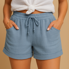 this combines style and comfort in an airy summer short for women that is perfect for warm days. The loose fit provides maximum freedom of movement, while the lightweight and breathable material keeps you cool. These shorts are ideal for a day at the beach, a walk, or your summer vacation, and can be effortlessly paired with any summer outfit. Casual and fashionable in one.