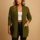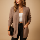 this is an elegant long women's cardigan with V-neck and pockets, designed for effortless style and everyday comfort. The relaxed fit and soft, breathable fabric make this cardigan perfect for autumn mornings, winter layering, or lounging at home. With a classic design in solid colors, this cardigan is easy to combine with both casual and business outfits. An essential piece for any wardrobe.