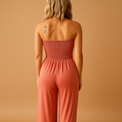 Discover this, a refined off-shoulder summer jumpsuit for women that perfectly combines style and comfort. The light and soft fabric feels pleasant on warm days, while the off-shoulder design gives you a feminine and modern look. Thanks to the practical pockets and versatile silhouette, this jumpsuit is perfect for both casual outings and summer parties. this will be your new favorite for a stylish and carefree look.