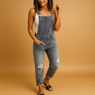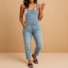 Ripped Denim Overall With Adjustable Straps For Women