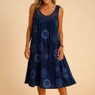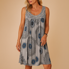 Exude confidence in this, a sleeveless summer dress for women with a vibrant print that elevates your style to the next level. The light and airy fabric keeps you cool on warm days, while the chic design is perfect for both casual outings and special occasions. This dress combines comfort with flair, making it ideal for any summer day.