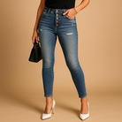 Give your casual wardrobe a bold upgrade with this, a slim fit women’s jeans with trendy ripped details. These modern jeans are made from a comfortable blend and feature a figure-hugging fit that beautifully accentuates your silhouette. The frayed finish adds an edgy touch to any outfit, ideal for everyday wear or a night out. Pair this with a simple top or a stylish blouse for an effortlessly cool look.