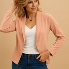 Easily bring class to your outfit with this, an open women’s blazer that combines elegance with modern flair. Thanks to its stylish open design and flattering fit, this blazer is ideal for both business settings and casual occasions. Perfect to pair with a dress or trousers for a versatile and chic look.