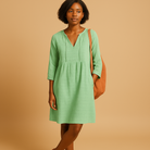 The this summer dress for women offers the perfect blend of style and comfort for sunny days. This knee-length midi dress with short sleeves features a flattering fit and is ideal for both casual and formal occasions. Made from a soft blend for breathable comfort, this dress is available in white, green, and light blue, shades that suit every style. Wear it with sandals for a casual look or pair with heels for an evening out.