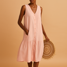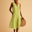 Stay stylish this summer with this, a lightweight V-neck summer dress for women that perfectly combines comfort and elegance. The feminine V-neckline and timeless silhouette make this dress ideal for a day at the beach, brunch with friends, or a summer evening out. Thanks to the light and breathable fabric, you’ll feel fresh and confident all day long – without sacrificing style.