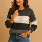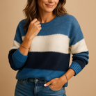 Meet this, a stylish striped sweater for women that perfectly combines warmth and elegance. The vibrant knit pattern adds a refined touch to any outfit, while the soft premium yarns provide exceptional comfort and insulation on cold days. Whether you wear it with jeans for a casual look or with a skirt for a more formal style, this ensures you always look effortlessly polished in the autumn and winter.